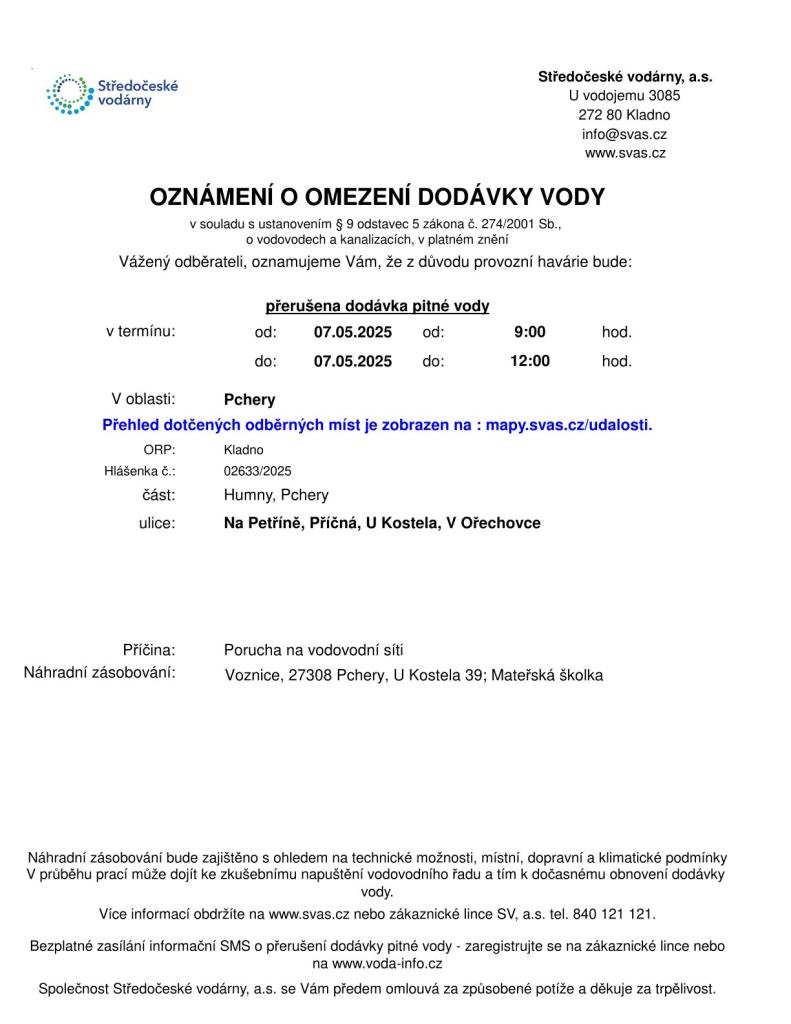Oznámení o omezení dodávky vody
